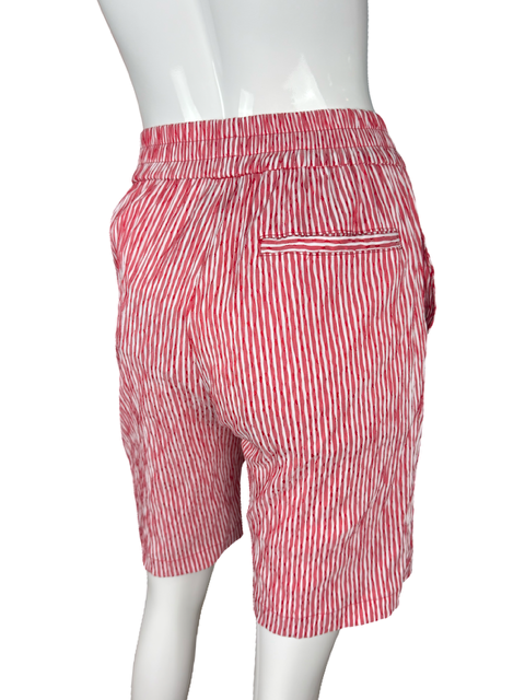 A summer wardrobe essential! Our Classic Board Shorts cut in lightweight red/white stripe seersucker with an elastic waist band, side pockets and back slit pocket. Cut just above the knee. Wrinkle resistant fabric make these shorts an excellent choice for travel.